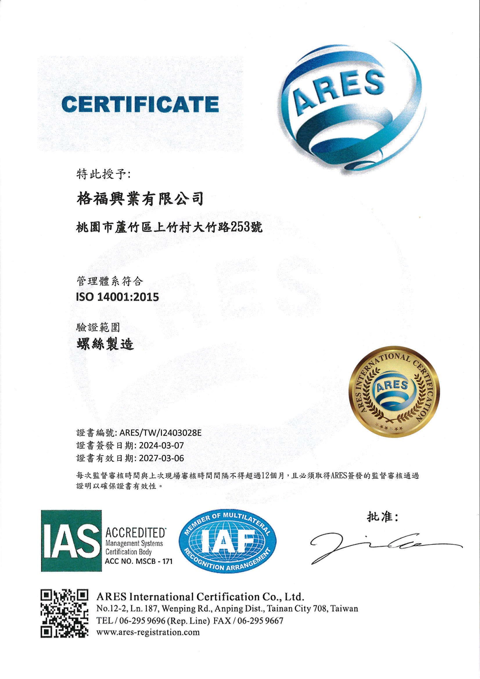 IATF 16949:2016 ISO 14001:2015